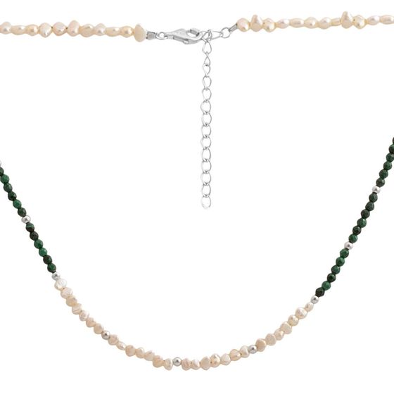 Колье 925 пробы с натуральным жемчугом барочным, зеленим жадеїдом. Вес украшения 8,11г. Страна происхождения: Италия.