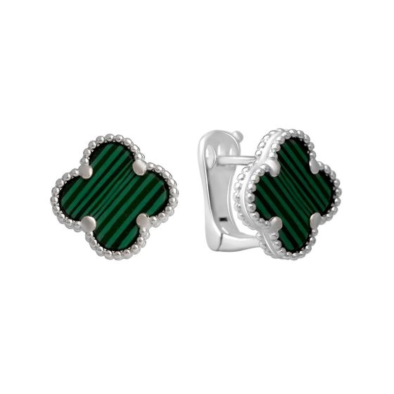 Серьги 925 пробы с малахитом. Вес украшения 6,25г. Физический размер изделия (высота*ширина): 17х17мм. Страна происхождения: Индия.
