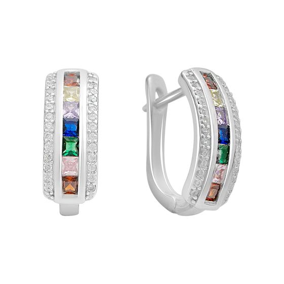 Серьги 925 пробы с фианитами. Вес украшения 3,84г. Физический размер изделия (высота*ширина): 13х5мм. Страна происхождения: Италия.