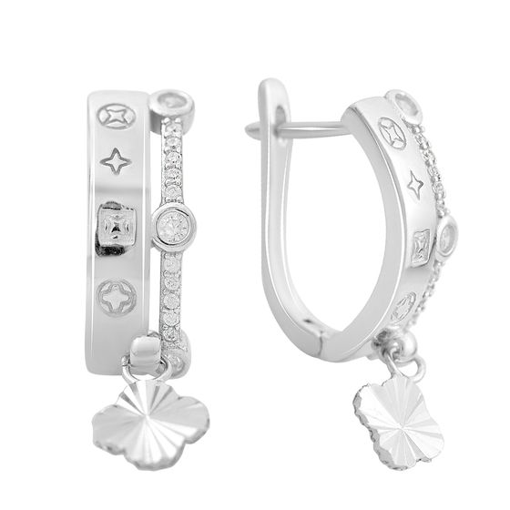 Серьги 925 пробы с фианитами. Вес украшения 4,75г. Физический размер изделия (высота*ширина): 28x7мм. Страна происхождения: Италия.
