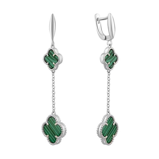Серьги 925 пробы с малахитом. Вес украшения 6,21г. Физический размер изделия (высота*ширина): 60х15мм. Страна происхождения: Индия.