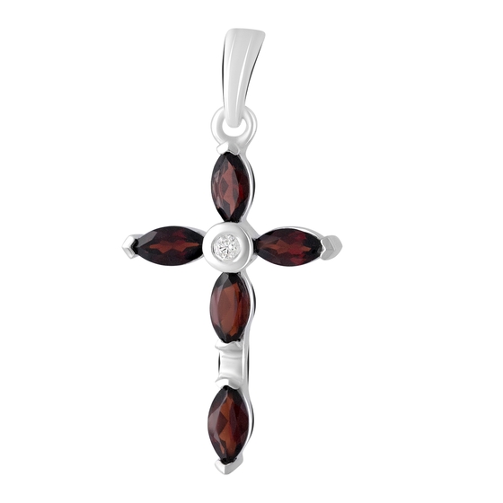 Подвеска крестик 925 пробы с натуральным гранатом 1.604ct. Вес украшения 2,2г. Физический размер изделия (высота*ширина): 30х12мм. Страна происхождения: Индия.