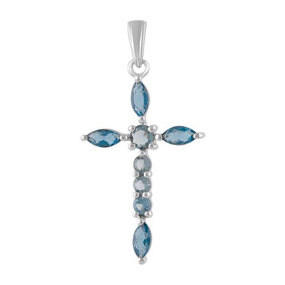 Серебряный крестик с топазом Лондон Блю 1.133ct