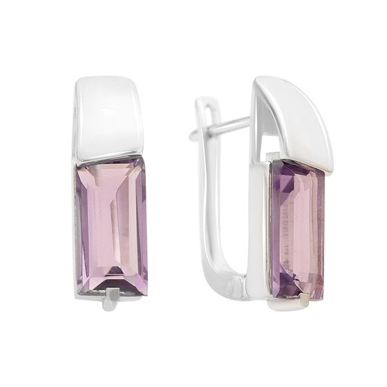 Серьги 925 пробы с натуральным аметистом 5.015ct. Вес украшения 5,86г. Физический размер изделия (высота*ширина): 20х6мм. Страна происхождения: Индия.