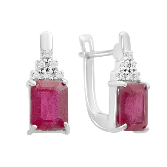 Серебряные серьги с рубином 4.78ct, фианитами