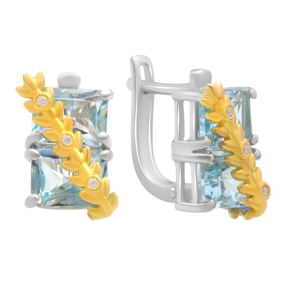 Серьги 925 пробы с натуральным топазом, фианитами. Вес украшения 6,04г. Физический размер изделия (высота*ширина): 13x14мм. Страна происхождения: Индия.
