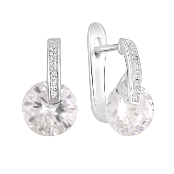 Серьги 925 пробы с фианитами. Вес украшения 4,98г. Физический размер изделия (высота*ширина): 15х8мм. Страна происхождения: Италия.