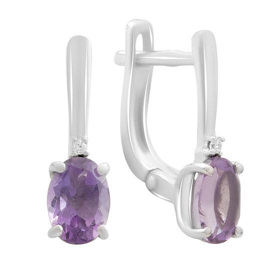 Серьги 925 пробы с натуральным аметистом 1.452ct. Вес украшения 2,57г. Физический размер изделия (высота*ширина): 16х4мм. Страна происхождения: Индия.