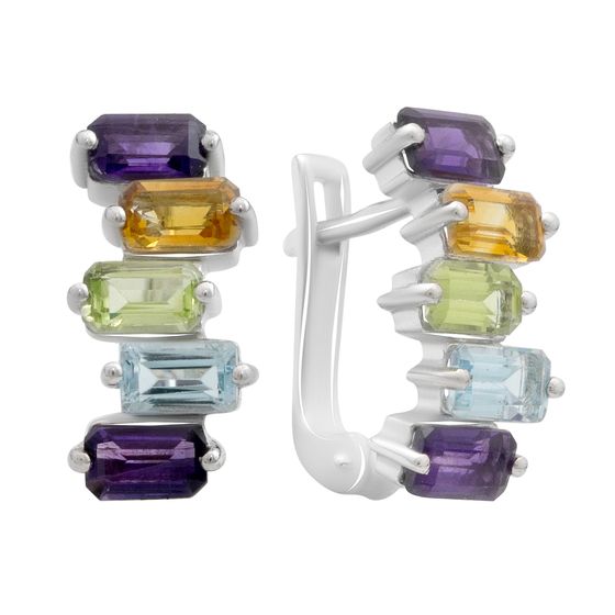 Серьги 925 пробы с натуральным аметистом 3.125ct, цитрином, хризолітом, топазом. Вес украшения 3,9г. Физический размер изделия (высота*ширина): 16х4мм. Страна происхождения: Индия.