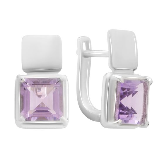 Серьги 925 пробы с натуральным аметистом 4.748ct. Вес украшения 6,8г. Физический размер изделия (высота*ширина): 10х10мм. Страна происхождения: Индия.