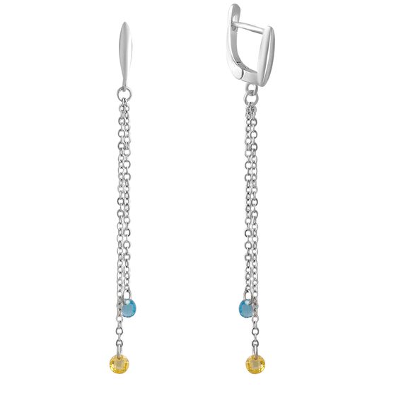 Серьги 925 пробы с фианитами. Вес украшения 3,37г. Физический размер изделия (высота*ширина): 70х5мм. Страна происхождения: Италия.