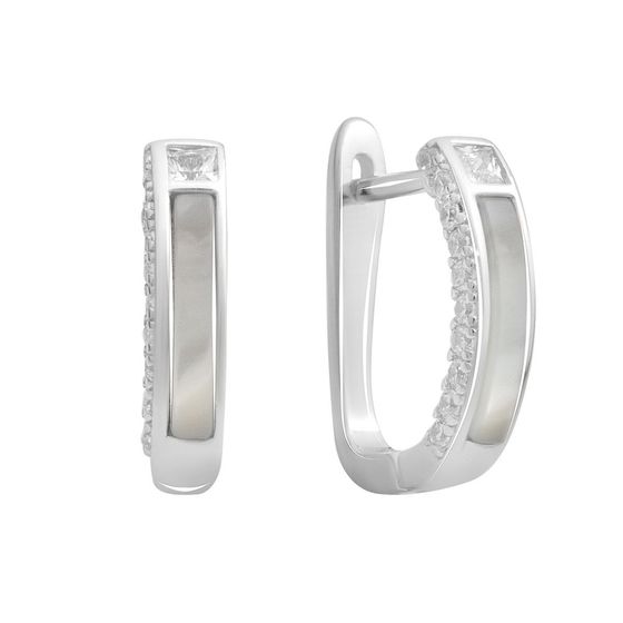 Серьги 925 пробы с натуральным фианитами, перламутром. Вес украшения 3,52г. Физический размер изделия (высота*ширина): 16х3мм. Страна происхождения: Италия.