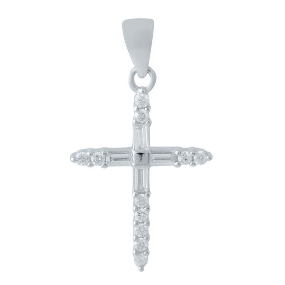 Подвеска крестик 925 пробы с фианитами. Вес украшения 1,35г. Физический размер изделия (высота*ширина): 25х15мм. Страна происхождения: Италия.