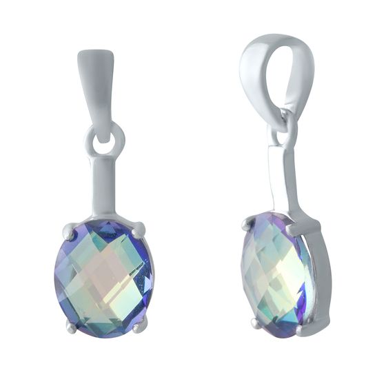 Подвеска 925 пробы с мистик топазом 4.507ct. Вес украшения 1,06г. Физический размер изделия (высота*ширина): 20х8мм. Страна происхождения: Индия.