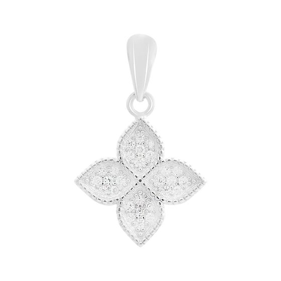 Подвеска 925 пробы с фианитами. Вес украшения 1,43г. Физический размер изделия (высота*ширина): 25х15мм. Страна происхождения: Италия.