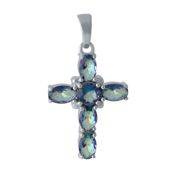 Подвеска крестик 925 пробы с мистик топазом. Вес украшения 2,68г. Физический размер изделия (высота*ширина): 30x17мм. Страна происхождения: Индия.