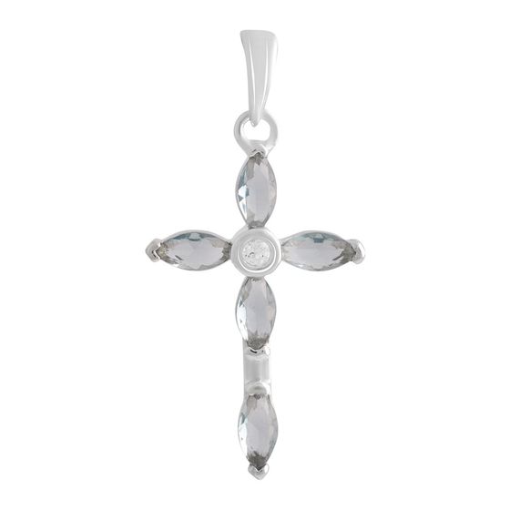 Подвеска крестик 925 пробы с топазом Лондон Блю 2.529ct, фианитами. Вес украшения 2,11г. Физический размер изделия (высота*ширина): 30х15мм. Страна происхождения: Индия.