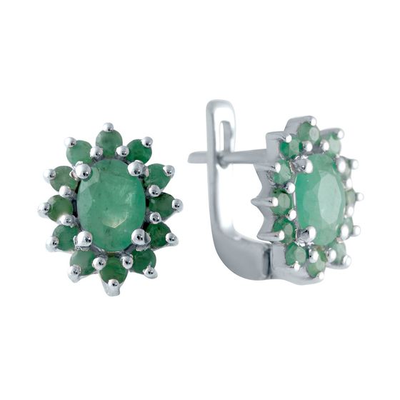 Серьги 925 пробы с натуральным изумрудом 2.608ct. Вес украшения 3,98г. Физический размер изделия (высота*ширина): 15х10мм. Страна происхождения: Индия.