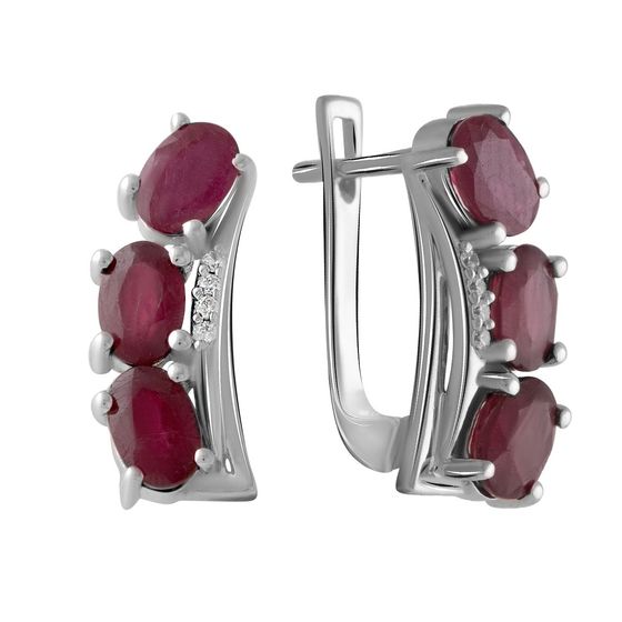 Серьги 925 пробы с натуральным рубином 2.071ct. Вес украшения 4,74г. Физический размер изделия (высота*ширина): 6х12мм. Страна происхождения: Индия.