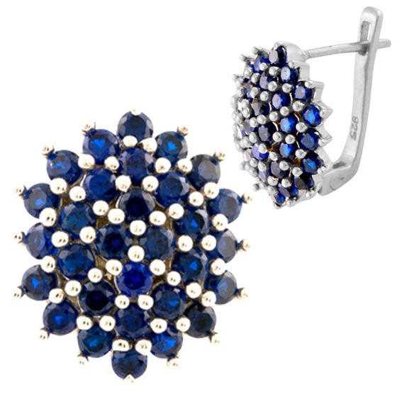 Серьги 925 пробы с сапфиром nano 1.98ct. Вес украшения 5,59г. Физический размер изделия (высота*ширина): 16х13мм. Страна происхождения: Индия.