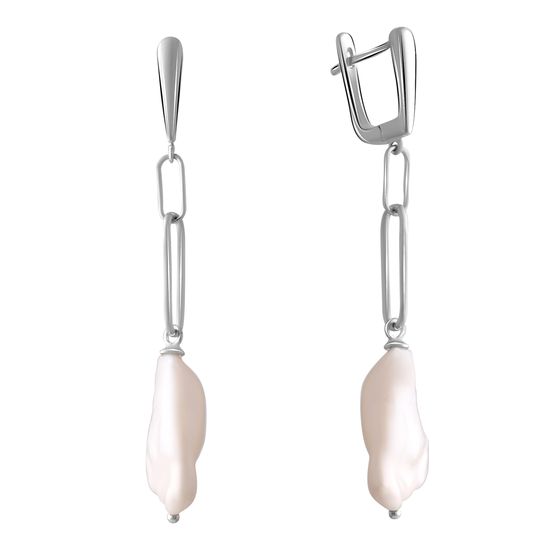 Серьги 925 пробы с натуральным жемчугом барочным 26.575ct. Вес украшения 6,42г. Физический размер изделия (высота*ширина): 55[12мм. Страна происхождения: Италия.