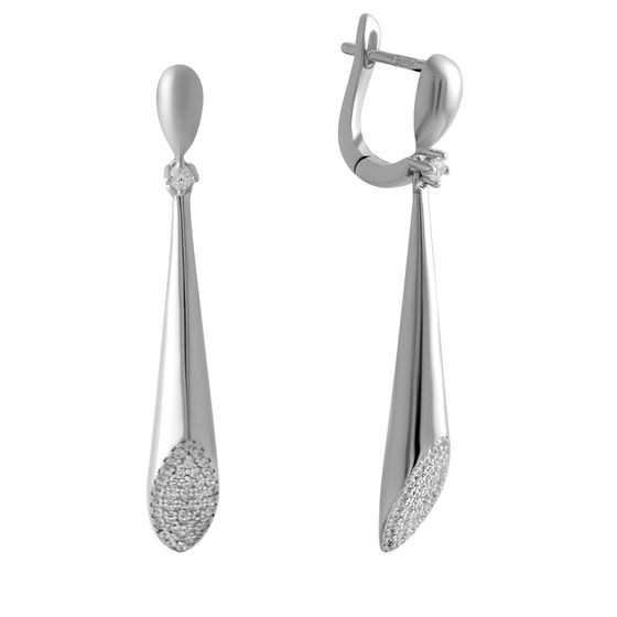 Серьги 925 пробы с фианитами. Вес украшения 8,1г. Физический размер изделия (высота*ширина): 33х20мм. Страна происхождения: Италия.