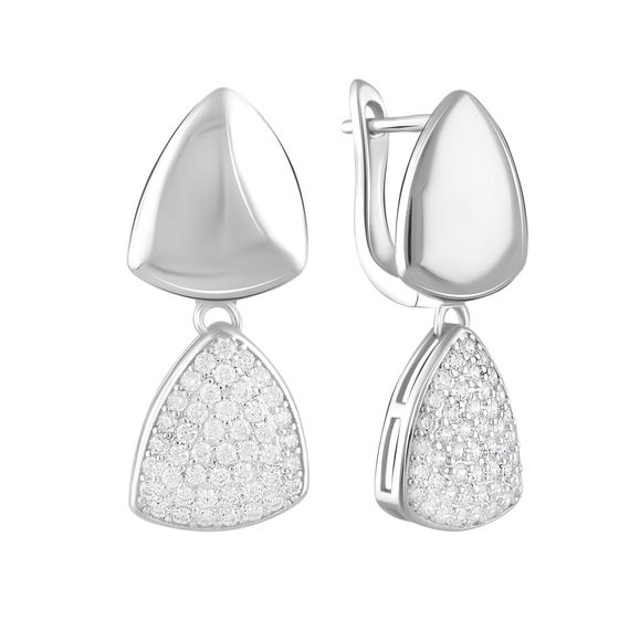 Серьги 925 пробы с фианитами. Вес украшения 8,04г. Физический размер изделия (высота*ширина): 30х13мм. Страна происхождения: Италия.