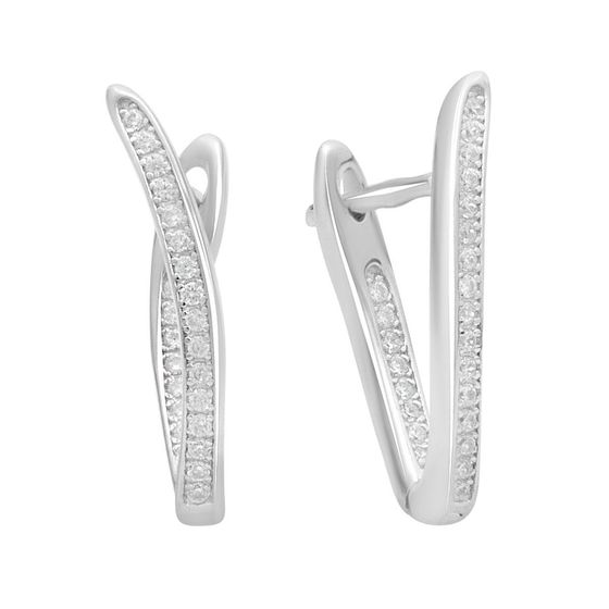 Серьги 925 пробы с фианитами. Вес украшения 2,55г. Физический размер изделия (высота*ширина): 18х3мм. Страна происхождения: Италия.